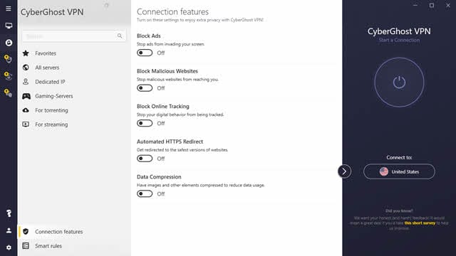 最重要的是,此功能允许您阻止钓鱼网站和内容不适当的网站。加速器 服务器位于 11 个国家/地区,包括美国、英国和德国。